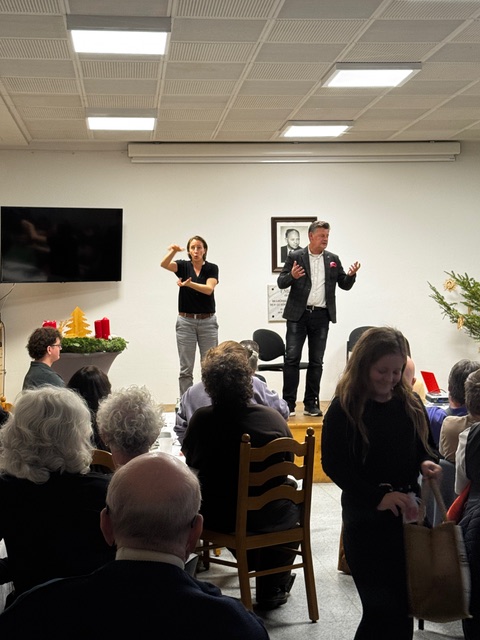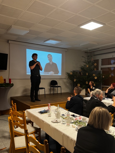 Am 06. Dezember 2025 lud der Gehörlosenverband Kärnten zur Jahresabschlussfeier ein. Verbandsleiterin Dagmar Schnepf konnte zahlreiche Verbandsmitglieder, Student:innen des neuen Dolmetsch-Lehrgangs (DÖGS) und, aus der Politik, Herrn Bürgermeister Scheider sowie den Kärntner Landtagsabgeordneten Maximilian Rakuscha begrüßen. Weiters haben einige Verhinderte eine Videobotschaft mit positiven Worten geschickt, wie AMB Martin Kahlig, Landeshauptmann-Stv.in Gabi Schaunig, Landeshauptmann-Stv. Martin Gruber und Landesrat Peter Reichmann. In ihrem Jahresrückblick erinnerte Dagmar Schnepf an viele schöne Momente, aber auch an Herausforderungen. Ebenso Thema war das angedachte Gehörlosengeld, um allen Betroffenen auch die möglichen Schattenseiten dieser Beihilfe aufzuzeigen. Herr Scheider und Herr Rakuscha richteten ebenfalls ein paar Worte an uns und versicherten weiterhin die Unterstützung der Stadt Klagenfurt und des Landes Kärnten. Gedolmetscht wurde vom Praktikanten Alexander Schnepf unter der Aufsicht der geprüften Dolmetscherin Eva Sacherer. Den unterhaltsamen Höhepunkt des Abends bildete die Schauspielgruppe Thow Show aus Deutschland, die alle mit ihren lustigen Sketches zum Lachen brachte. Mit einem Überraschungsbesuch vom Nikolaus und dem kleinen Helfer, dem Krampus, fand die Jahresabschlussfeier mit kleinen Geschenken für die Mitglieder einen wunderbaren Ausklang.