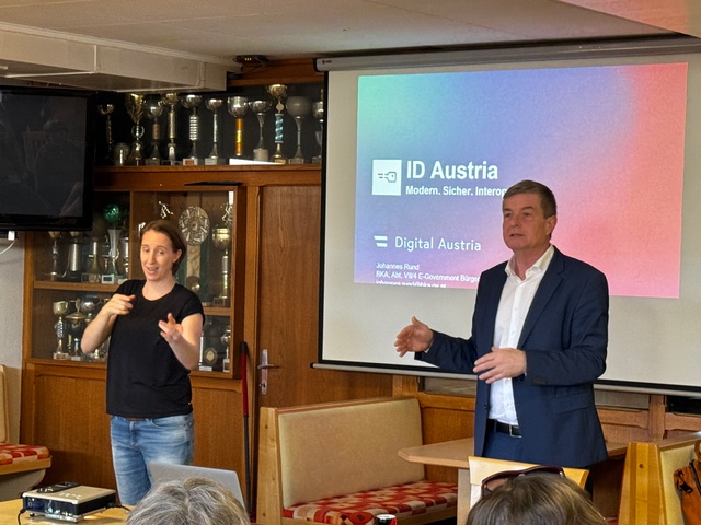 Am 27. Februar hatten wir im Gehörlosenzentrum Klagenfurt hohen Besuch aus dem Bundesministerium. Herr Rund kam vorbei, um uns das Thema ID-Austria näher zu bringen. Gedolmetscht von Eva Sacherer, erzählte er über die Hintergründe der App und ihre Anwendungsmöglichkeiten.