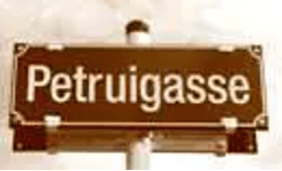 Im Herbst 2001 war für den Landesverband ein ganz besonderes Ereignis: die bisher namenlose Straße vor unserem Zentrum hatte endlich auf unserem Wunsch (und mit politischer Unterstützung von Fr. B. Merlitsch) einen sehr bezeichnenden Namen bekommen: Petruigasse. Zur Einweihungsfeier war natürlich vor allem auch Fr. Singer, die Tochter von Emil Petrui eingeladen. LV-Leiterin Fr.Wrießnegger würdigte in ihrer Ansprache die Aufbauarbeit und den Einsatz von Emil Petrui für die Kärntner Gemeinschaft der Gehörlosen. Unter den Gästen war es für jene älteren Gehörlosen, die Petrui noch persönlich gekannt hatten, eine große Freude, dass mit dieser Namensgebung auch eine späte Anerkennung seiner Arbeit erfolgt ist.